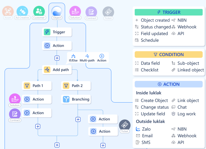 Smart Logic: Go beyond simple tasks. Create powerful logic that travels across objects, aggregates data from different departments, and updates records automatically without you lifting a finger.