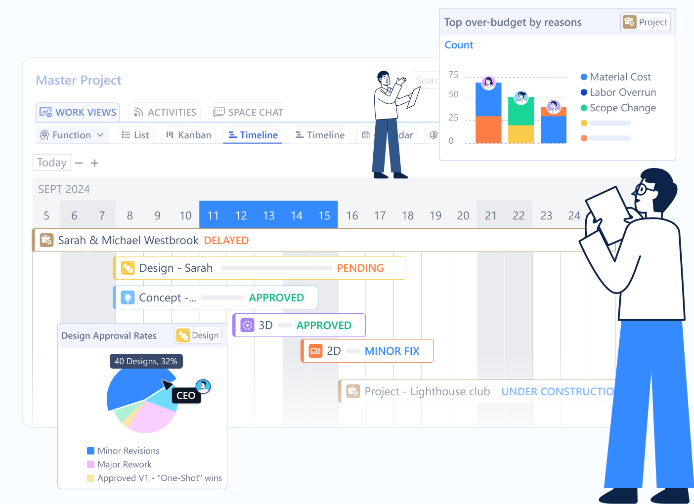 Watch the margin: Track billable hours and expenses against the budget in real-time, ensuring every project stays profitable as it progresses.