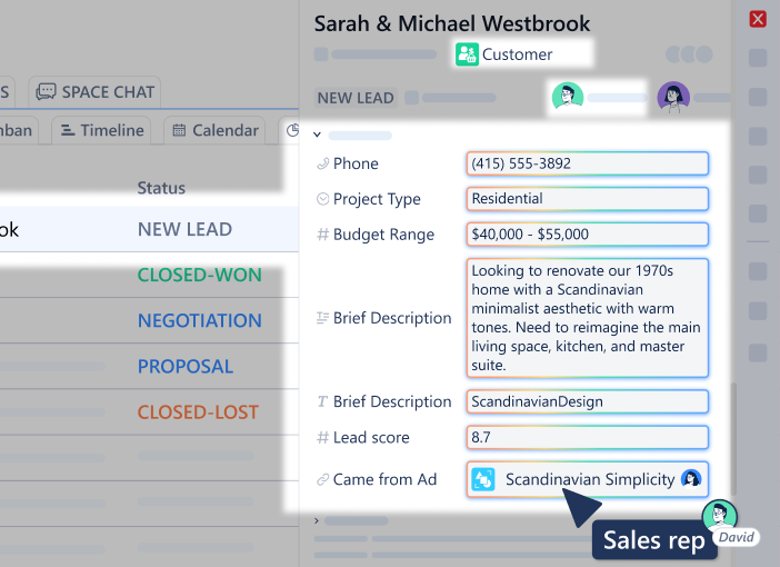 Add “Contract Value” (Currency) and “Fabric Requirements” (Rich Text). From formulas to data table, you have over 20 field types to capture every unique detail of your niche.