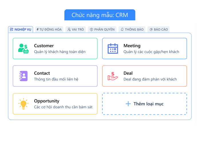 Tự tạo ra CRM, HRM, Asset Management, Request & Approval…anything