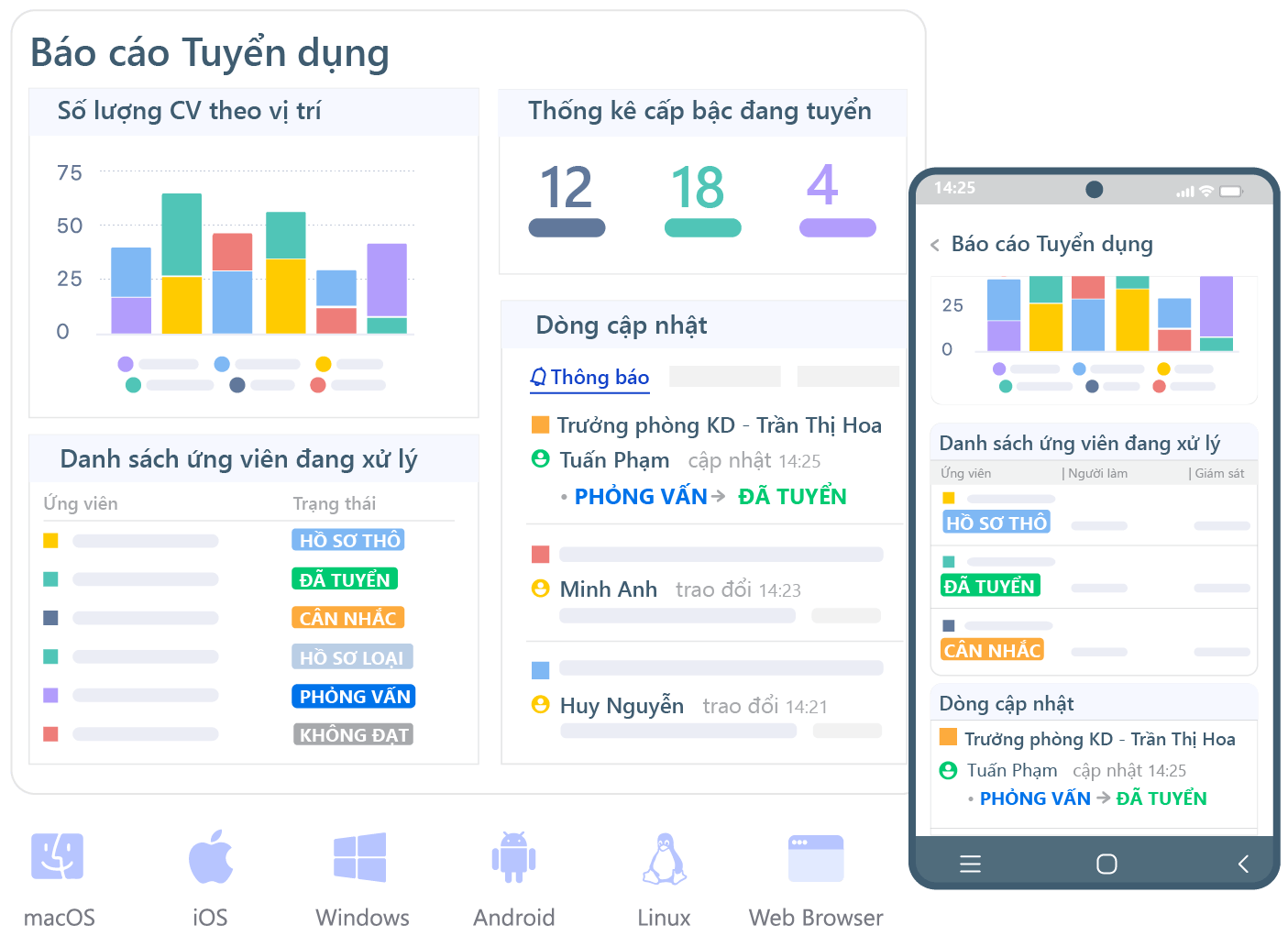 • luklak đem đến trải nghiệm làm việc thông suốt và quen thuộc với mọi chức năng công việc chạy trên một màn hình giao diện đồng nhất. tạo chức năng nào trên web/desktop thì cũng mặc định có luôn trên mobile app.