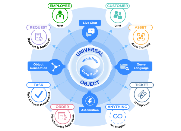 Khi Universal Object gặp Universal Automation, hệ thống không chỉ lưu trữ thông tin — mà bắt đầu tự suy nghĩ và hành động. Mỗi Object là một mắt xích thông minh, mang trong mình dữ liệu và quy trình riêng.
