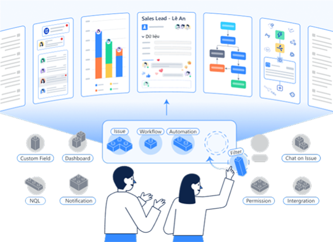 Định nghĩa & gọi tên mối liên kết (issue link) giữa các nghiệp vụ (issue type) khác nhau. Nhanh chóng liên kết các công việc để hiểu rõ bức tranh tổng thể, có biện pháp phối hợp. Issue link cũng được gọi ra để thực hiện các hành động tự động hóa với các công việc liên quan, mà không cần làm thủ công.