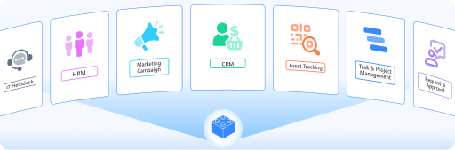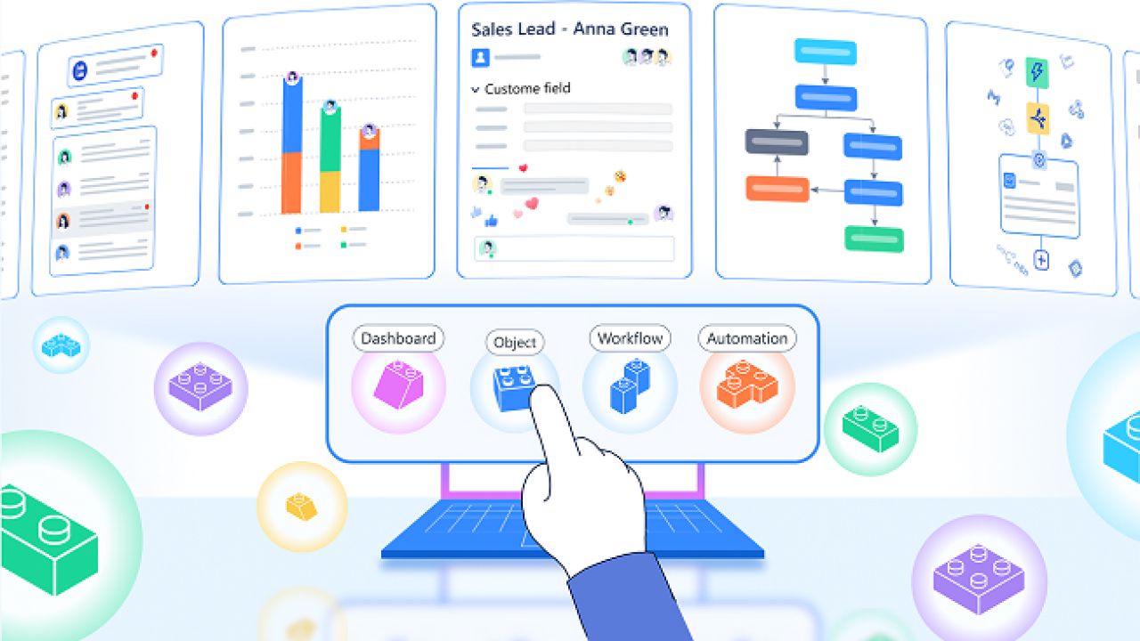 Chức năng là bản thiết kế vận hành hoàn chỉnh cho một phần nghiệp vụ, chẳng hạn như CRM hoặc hệ thống quản lý dự án. Người dùng kéo thả định nghĩa các Loại việc, Luồng tiến trình, Trường dữ liệu và các tự động hóa thành một bộ giải pháp chuẩn hóa. Thiết kế một lần, dùng lại nhiều lần.