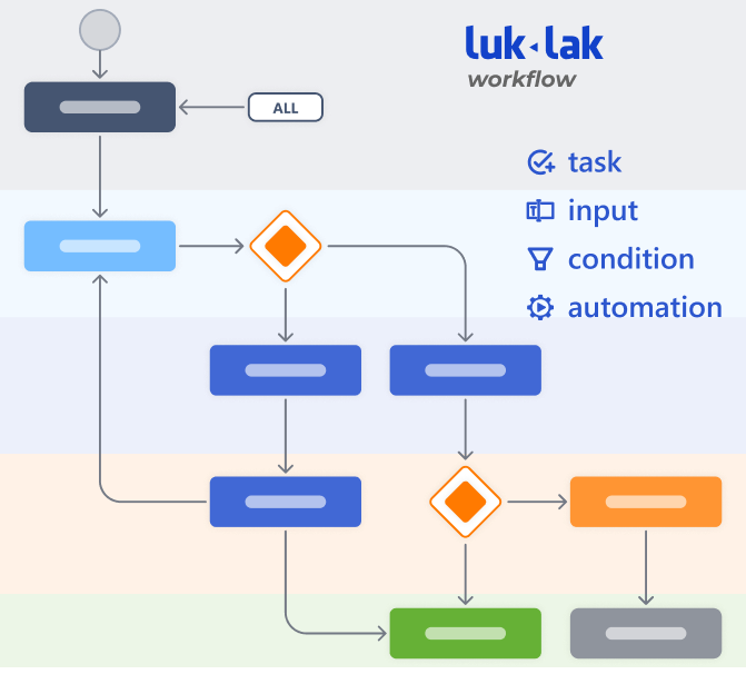 Thiết kế workflow cho từng nghiệp vụ, chuẩn hóa vận hành. Chuyển trạng thái trực tiếp trên từng đầu việc, làm chuẩn theo quy trình thiết kế sẵn. Mọi thay đổi, cập nhật trên từng đầu việc đều có thể làm kích hoạt các quy tắc tự động hóa, giúp tương tác kết nối với dữ liệu công việc ở nghiệp vụ, phòng ban khác.
