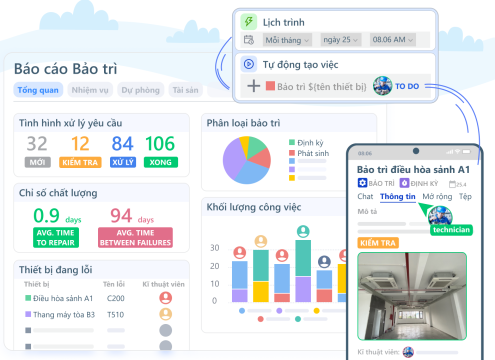 Cách hoạt động: giao nhiệm vụ bảo trì, quản lý tình trạng tài sản, theo dõi tiến độ, nhắc nhở kịp thời theo lịch trình, lưu giữ chính xác lịch sử bảo trì…