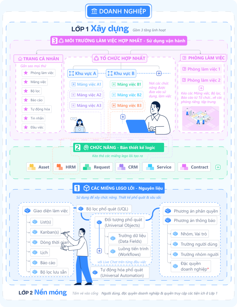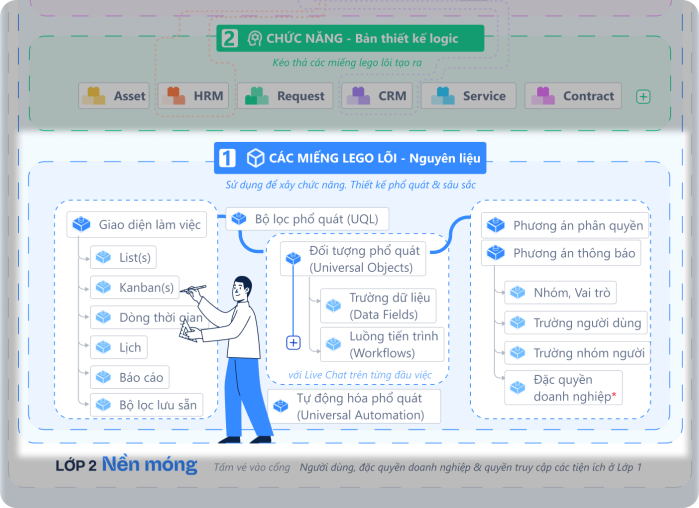 🔧 Lớp Xây Dựng (Build Layer): với 9 miếng lego phổ quát để bạn tự do kiến tạo mọi nghiệp vụ