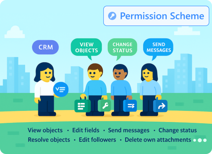 Phân quyền đến cấp hành vi: Xác định ai được Xem, Tạo, Sửa, Xóa hay Chat trên các 🧊 Object.