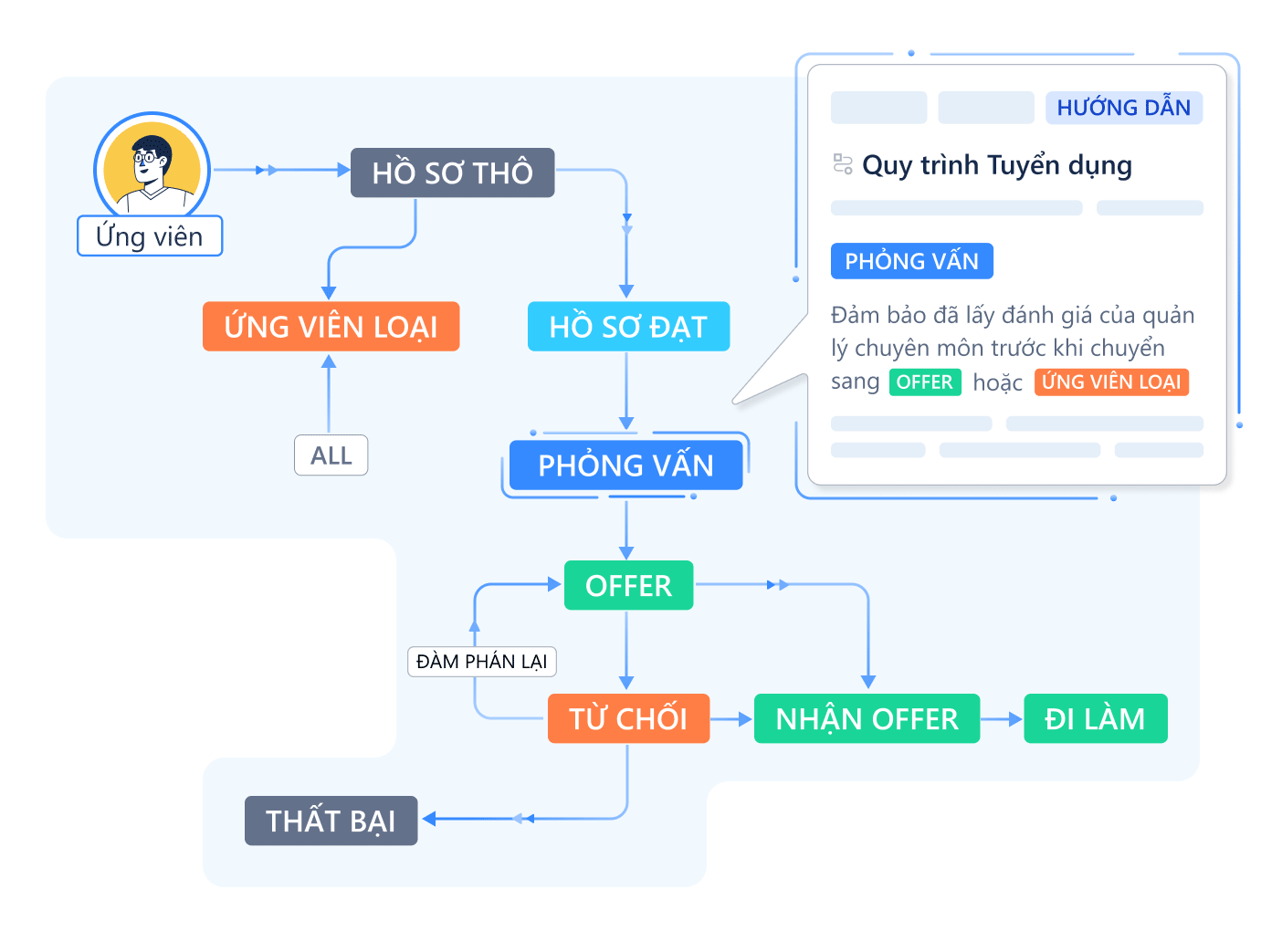 Việc nào trong Luklak cũng có thể được định nghĩa quy trình riêng. Nhiều quy trình có thể kết nối với nhau thành một hệ thống vận hành liền mạch. Định nghĩa rõ trạng thái, bước chuyển, điều kiện, yêu cầu nhập liệu. Nâng cao chất lượng toàn bộ các khâu vận hành.